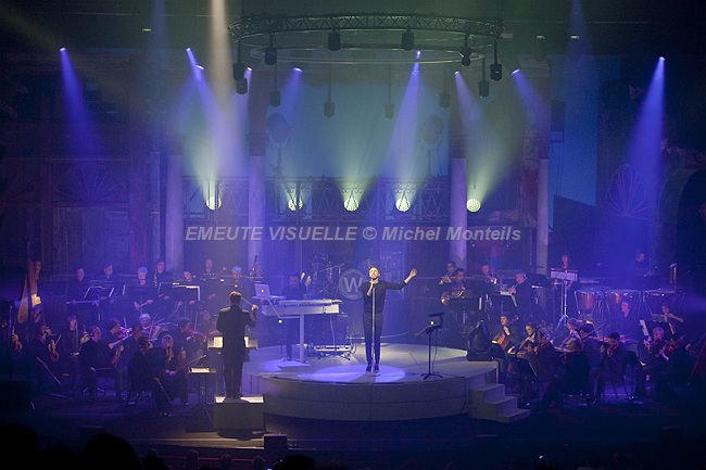 Afin de clore en beauté une tournée qui est passée par des lieux de concerts particulièrement insolites ou décalés comme le Mont Saint Michel ou le Pic du Midi, CHRISTOPHE WILLEM s’installe au Châtelet. Le chanteur a choisit cette fois d’être accompagné, la salle s’y prêtant idéalement , par un grand orchestre symphonique.
