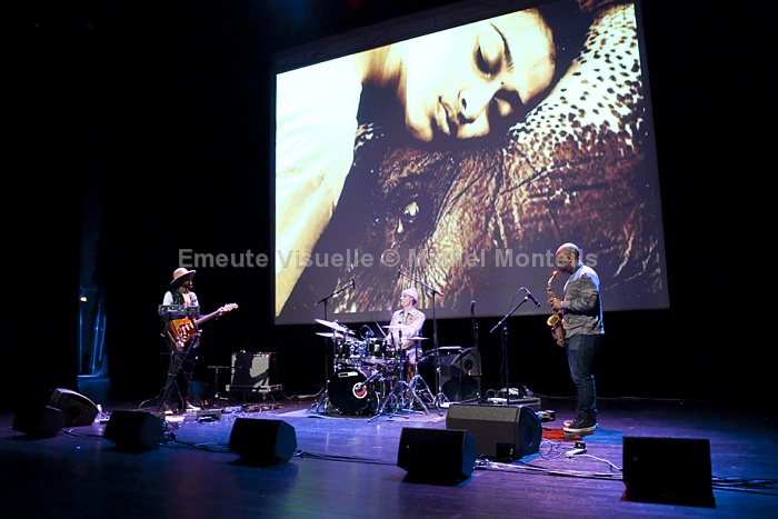 TRANSCENDENCE se compose de JAIMEO BROWN batteur qui a travaillé avec Geri Allen Q-tip ou Pharoah Sanders, de CHRIS SHOLAR à la guitare et de JALEEL SHAW au sax. Leur projet « WORK SONGS » (qui n’est pas sans rappeler le travail de Chassol) est une œuvre visuelle et musicale ambitieuse mêlant samples, musique live et chants traditionnels des forçats de la terre : travailleurs agricoles, mineurs, ouvrières, esclaves, prisonniers… Après le concert un moment d’exception: le trio s’est longuement entretenu avec le public présent. Une occasion rare d’échanger avec des musiciens d’une grande gentillesse parfaitement accessibles et plein d’humilité.