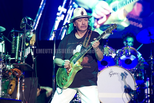 La légende vivante CARLOS SANTANA est de retour dans la capitale avec son « Divination tour » pour une date unique « indoor ». les autres concerts dans l’hexagone cet été étant dans le cadre de festivals en plein air ( Lyon, Albi, Cognac …). Force est de constater après les années que le temps ne semble avoir strictement aucune prise sur lui ! Carlos était pourtant il y a quelques cinquante ans sur la scène du mythique festival Woodstock