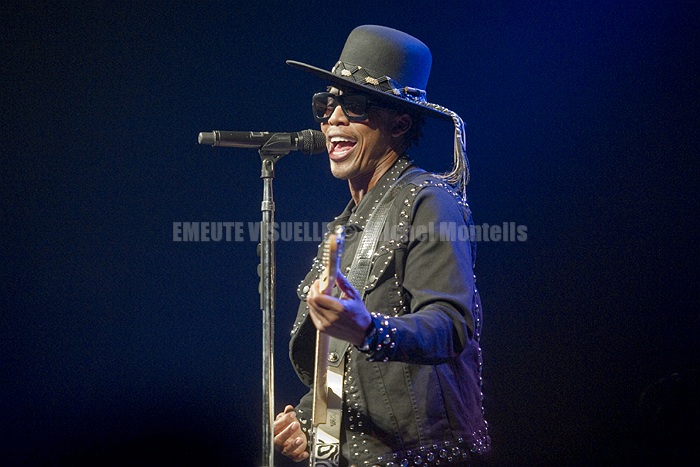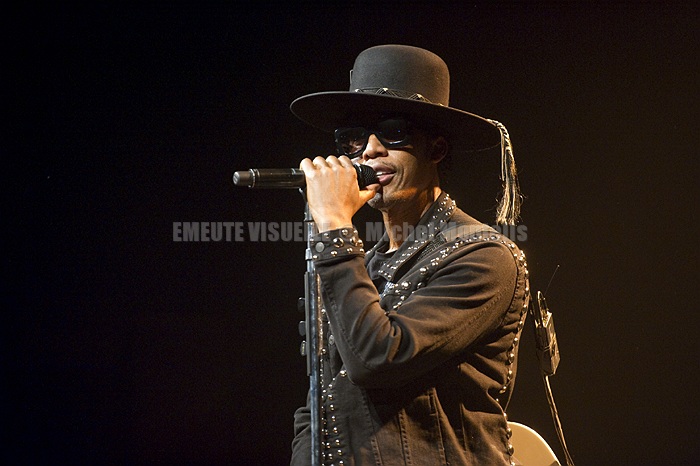RAPHAEL SAADIQ ne cache pas son plaisir de fouler la scène de l’Élysée Montmartre qui affiche complet. Il faut quand même préciser que son précédent album remonte à….. 8 ans !. Pas d’inquiétude : Le pape de la nu soul est toujours capable d’un funk pêchu. Le musicien d’Oakland a commis un nouvel opus très personnel intitulé « Jimmy Lee ». Il l’a écrit après la mort de son frère décédé d’une overdose.