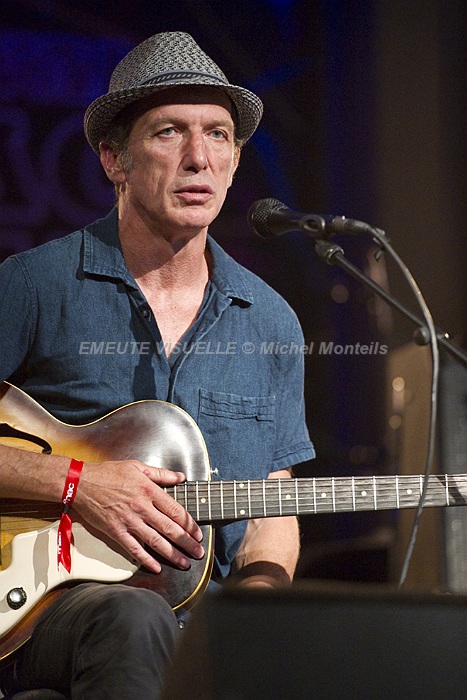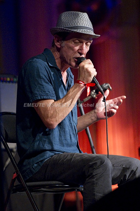 MIOSSEC en quatuor sur la scène intimiste du salon. Une formation parfaite pour présenter « Mammifères » son nouvel et déjà dixième album. Au coté du chanteur particulièrement détendu et souriant: Mirabelle Gilis au violon,  Johann Riche à l’accordéon et Leander Lyons aux guitares , claviers. L’alchimie entre eux fonctionne à merveille et les moments de grâce nombreux.