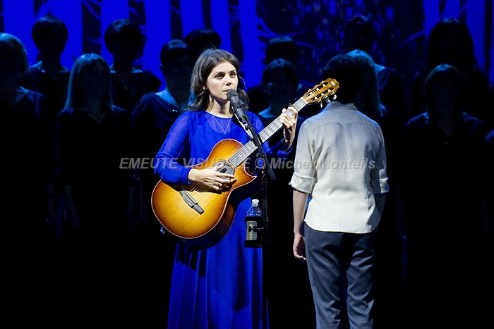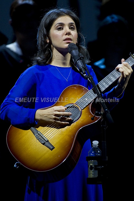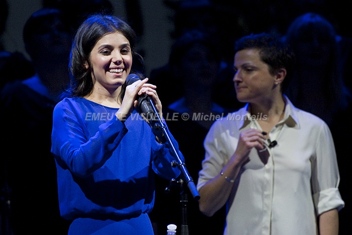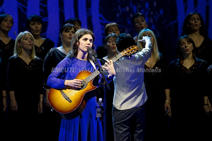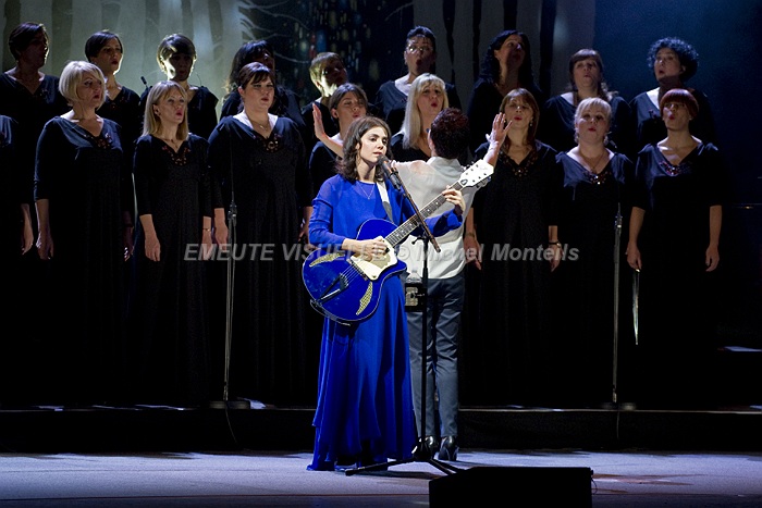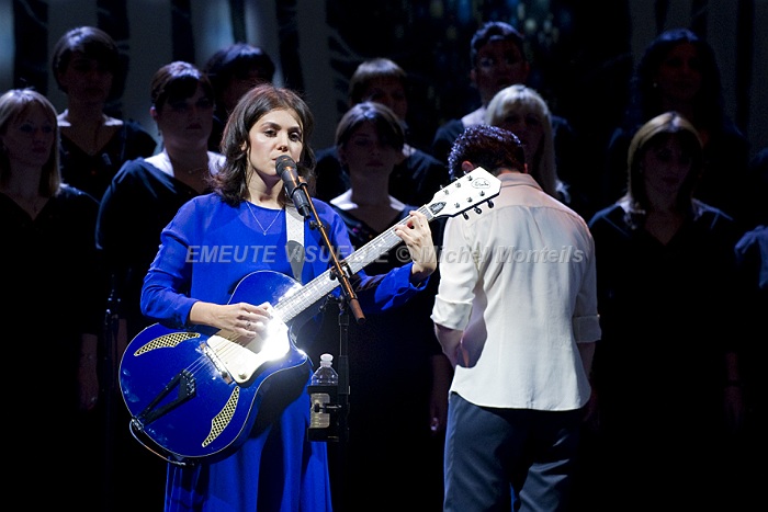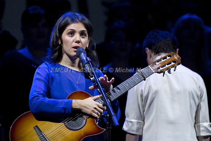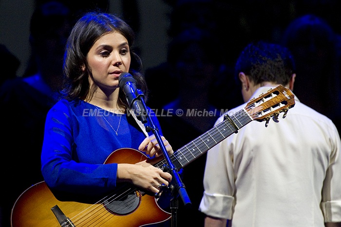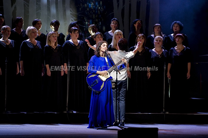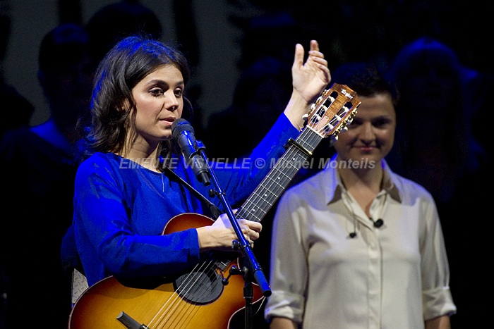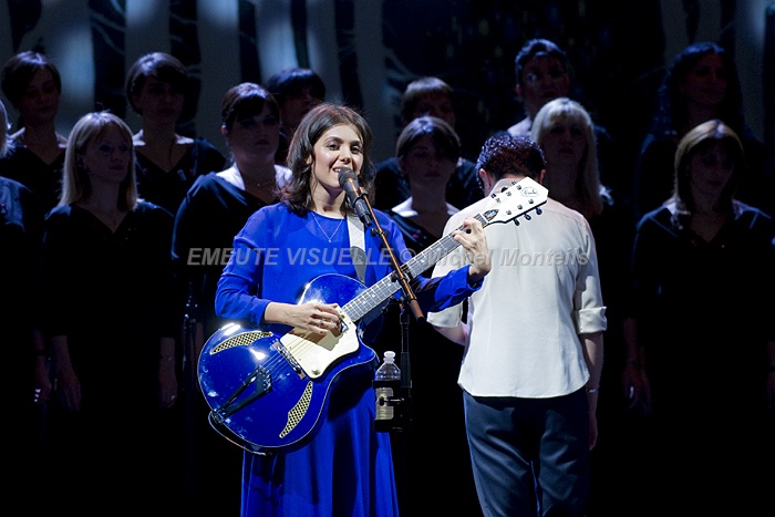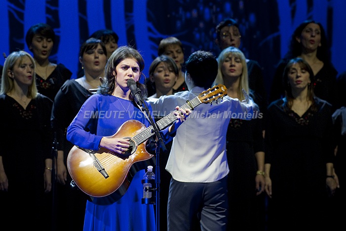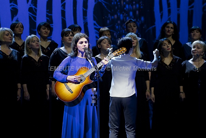 KATIE MELUA accompagnée par le Gori Womens’s Choir sur la scène de l’Olympia. Cette Chorale intégralement féminine est également mise en avant sur le dernier album de la chanteuse. « In winter » contient beaucoup de références à la Georgie natale de Katie. Les arrangements avec cette extraordinaire chorale composée de 23 jeunes femmes ont été confiés à Bob Chilcott un grand spécialiste du genre.