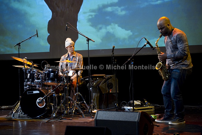 TRANSCENDENCE se compose de JAIMEO BROWN batteur qui a travaillé avec Geri Allen Q-tip ou Pharoah Sanders, de CHRIS SHOLAR à la guitare et de JALEEL SHAW au sax. Leur projet « WORK SONGS » (qui n’est pas sans rappeler le travail de Chassol) est une œuvre visuelle et musicale ambitieuse mêlant samples, musique live et chants traditionnels des forçats de la terre : travailleurs agricoles, mineurs, ouvrières, esclaves, prisonniers… Après le concert un moment d’exception: le trio s’est longuement entretenu avec le public présent. Une occasion rare d’échanger avec des musiciens d’une grande gentillesse parfaitement accessibles et plein d’humilité.