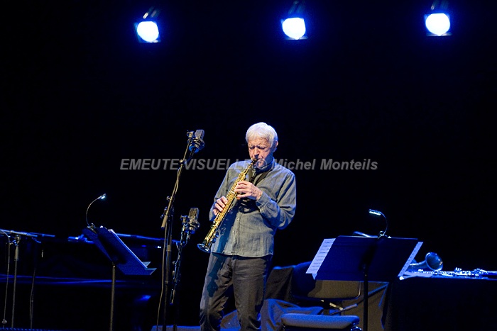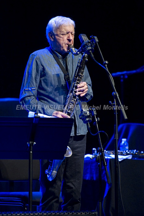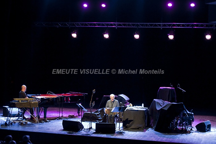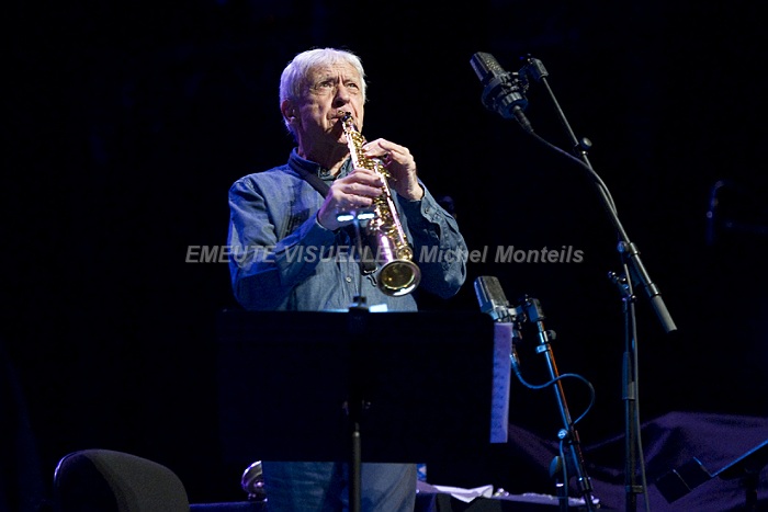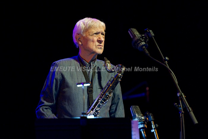 En ouverture de cette Nuit du Jazz le duo complice MICHEL PORTAL et BOJAN Z.  le premier est un adepte de l’échange et du renouvellement perpétuel à un tel point qu’il serait vain de vouloir le classer dans un seul genre musical.  le second qu’il soit accompagnateur ou soliste fait toujours preuve d’une grande créativité musicale.  Sur scène une alchimie rare et inventive les motive avec bonheur.